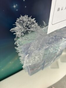 For the Frozen Gift, micro-bubble resin layering mimicked ice crystallization.