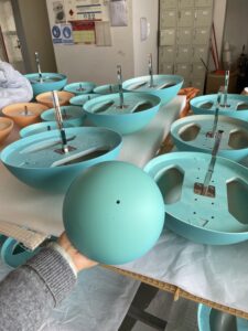 Each heart or ripple module was reinforced internally with stainless steel armature.