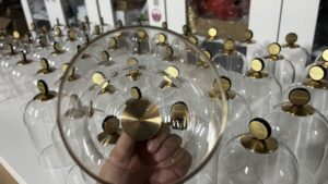The brass frames and dome tops were CNC-machined for precision, followed by brushed texture and PVD electroplating, ensuring oxidation resistance.