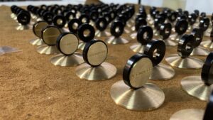 CNC brushed brass frames for labeling