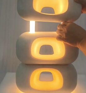 The main sculptural components were made through ABS injection molding, then bonded using ultrasonic welding to achieve a seamless exterior.