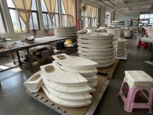The process began with 3D modeling. Using Rhino and SolidWorks, Samtop’s design engineers translated the creative sketches into detailed CAD geometry. Each curve and connection point was optimized for vacuum forming feasibility and visual balance.