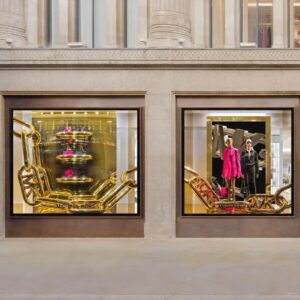 For Michael Kors’ flagship window display, we were commissioned to produce the striking giant gold chain installation that defines the store’s luxurious aesthetic.