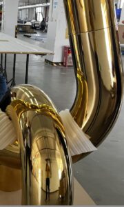 Creating a mirror-like gold surface on a plastic base was the project’s biggest challenge.